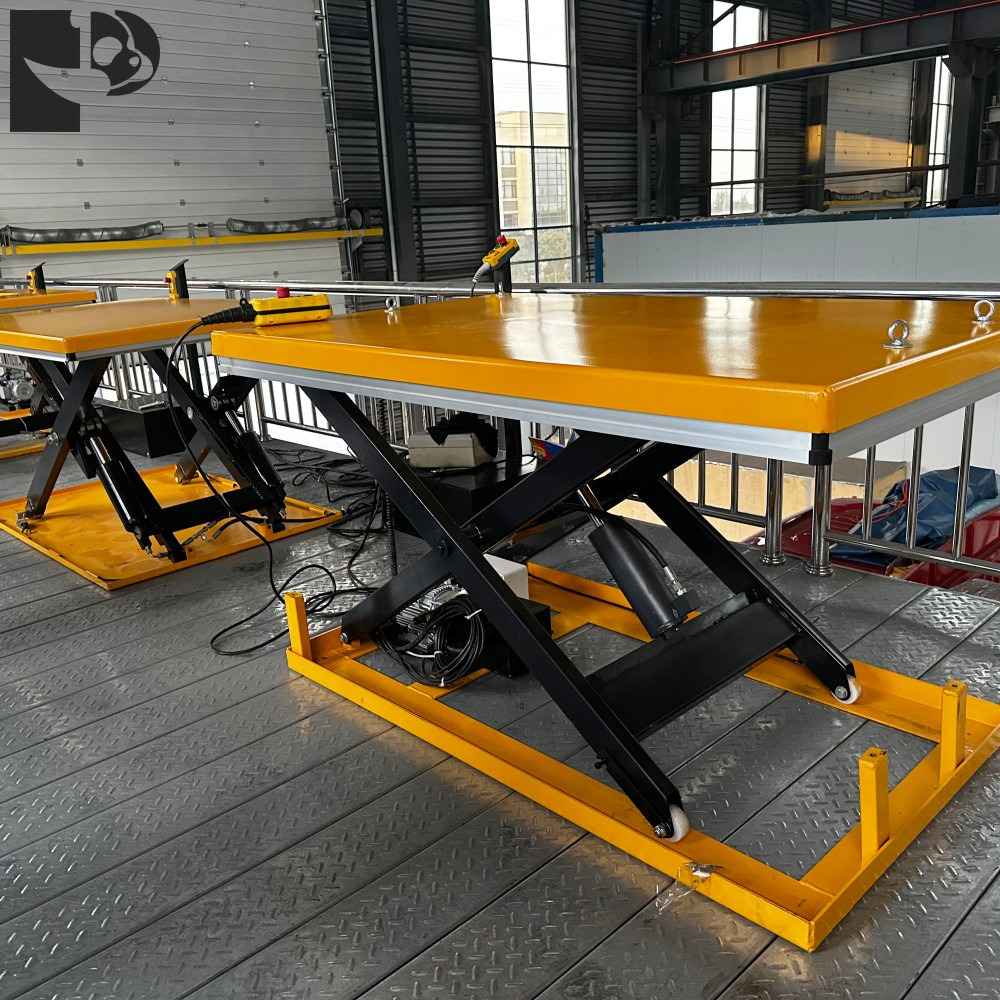 When the hydraulic system is activated, hydraulic oil in the cylinder pushes the piston rod to extend and retract, driving the scissor arms to expand around their hinge points, causing the platform to rise vertically. Conversely, when the hydraulic oil flows back, the scissor arms contract, and the platform descends. The change in the crossing angle of the scissor arms determines the lifting height of the platform. Thanks to its structural design, the platform remains level throughout the lifting process, ensuring excellent stability.