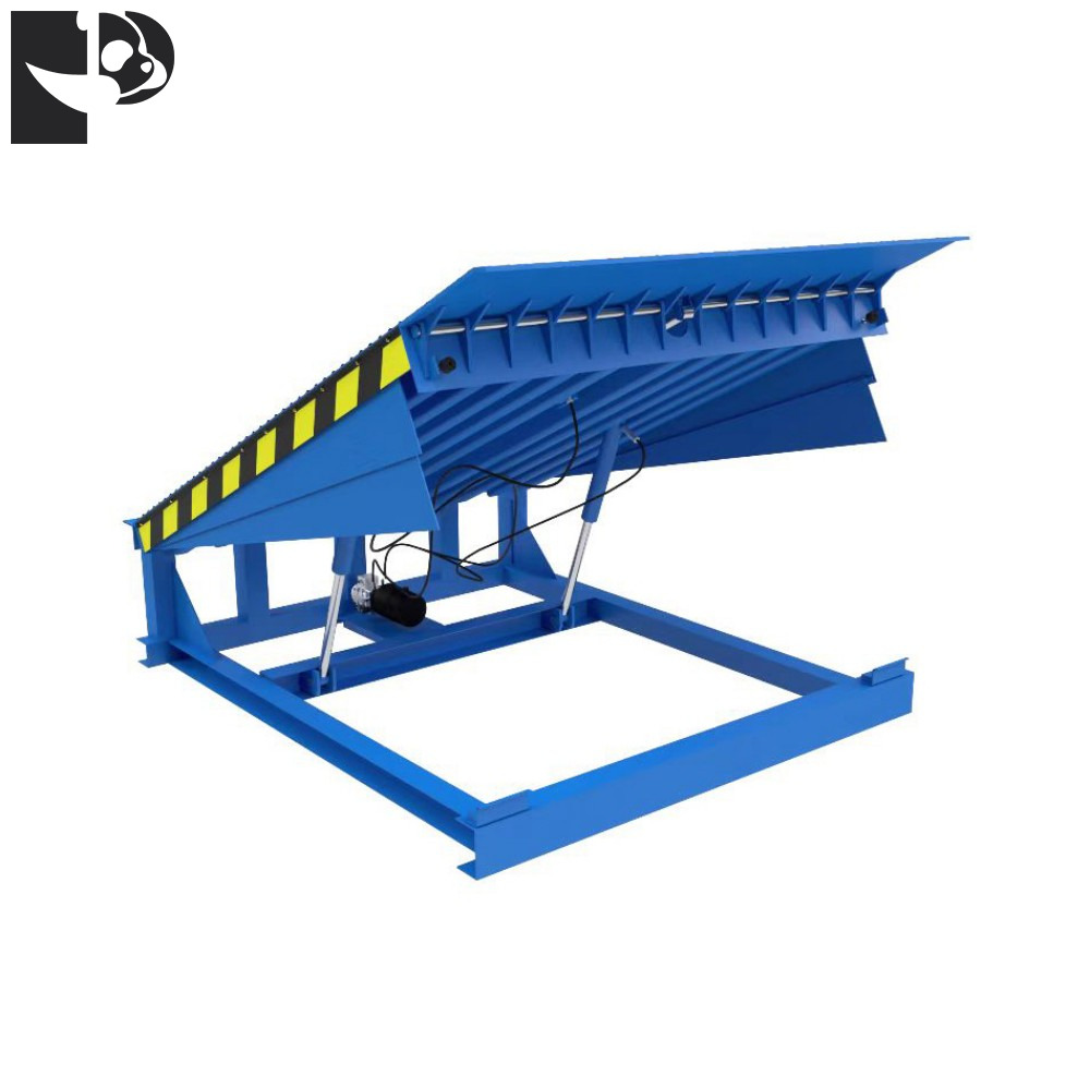 Taking a Folding Dock Leveler as an example, the platform tilt is achieved by a hydraulic cylinder. The tilt angle is usually adjustable between 7°–12°. After raising or lowering to the required position, the flap board is further adjusted via the hydraulic cylinder or electric push rod to align with the cargo truck or loading dock, forming a transitional slope that facilitates loading or unloading operations.